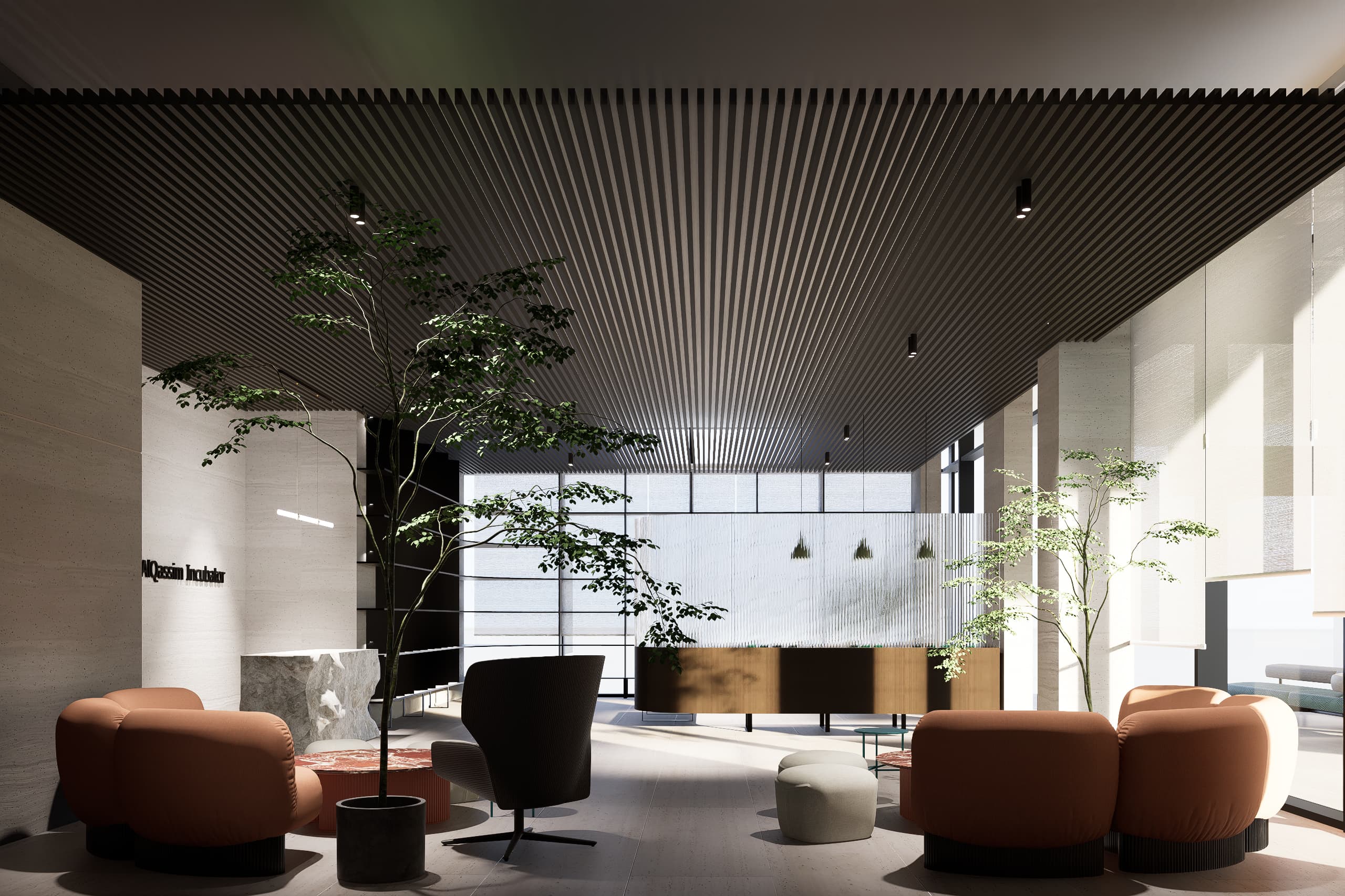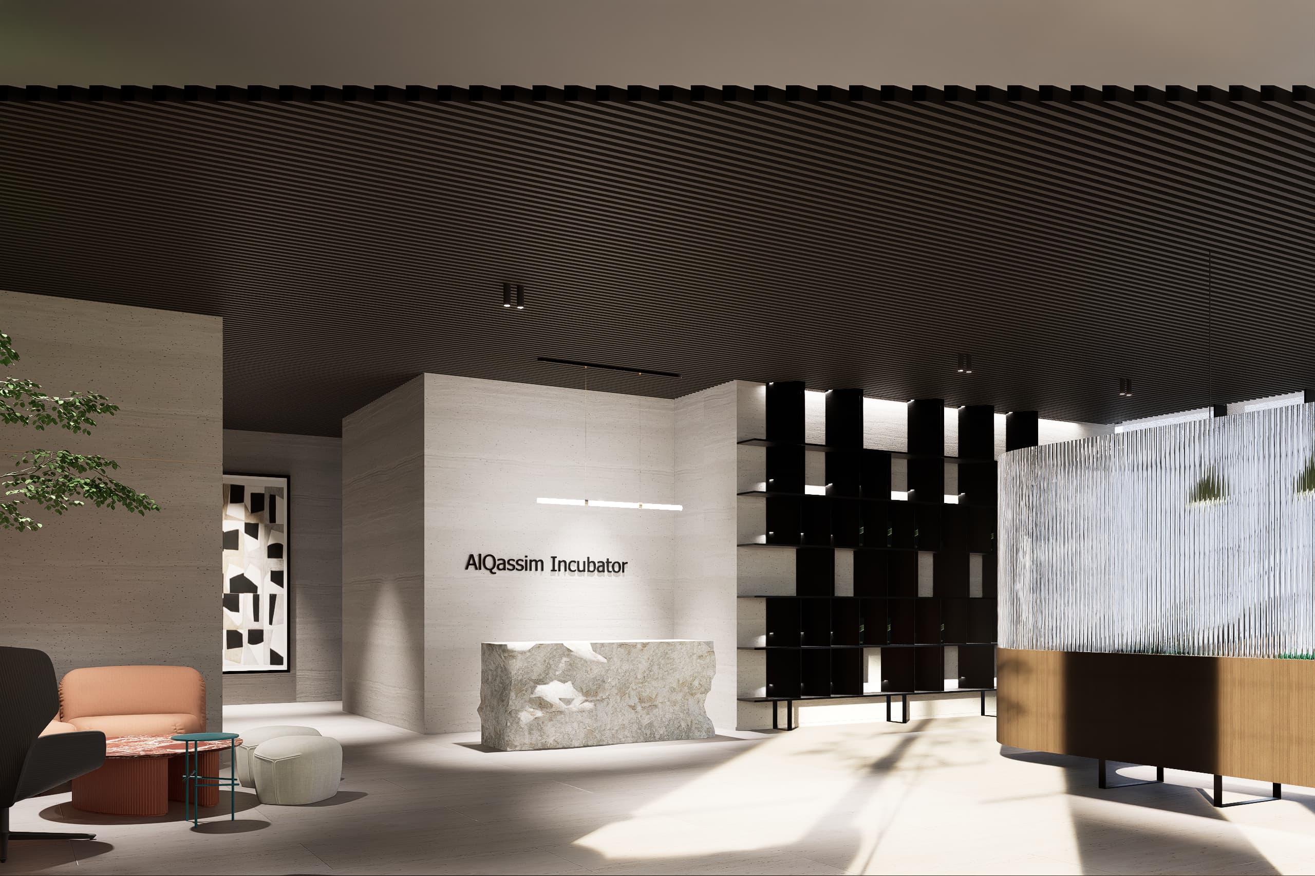 The AlQassim Incubator is a contemporary office environment designed to foster innovation, collaboration, and entrepreneurial growth in Al Qassim. Conceived as a dynamic hub for emerging businesses, the project brings together professional workspaces and collaborative areas within a refined architectural setting that balances functionality with a warm and welcoming atmosphere.