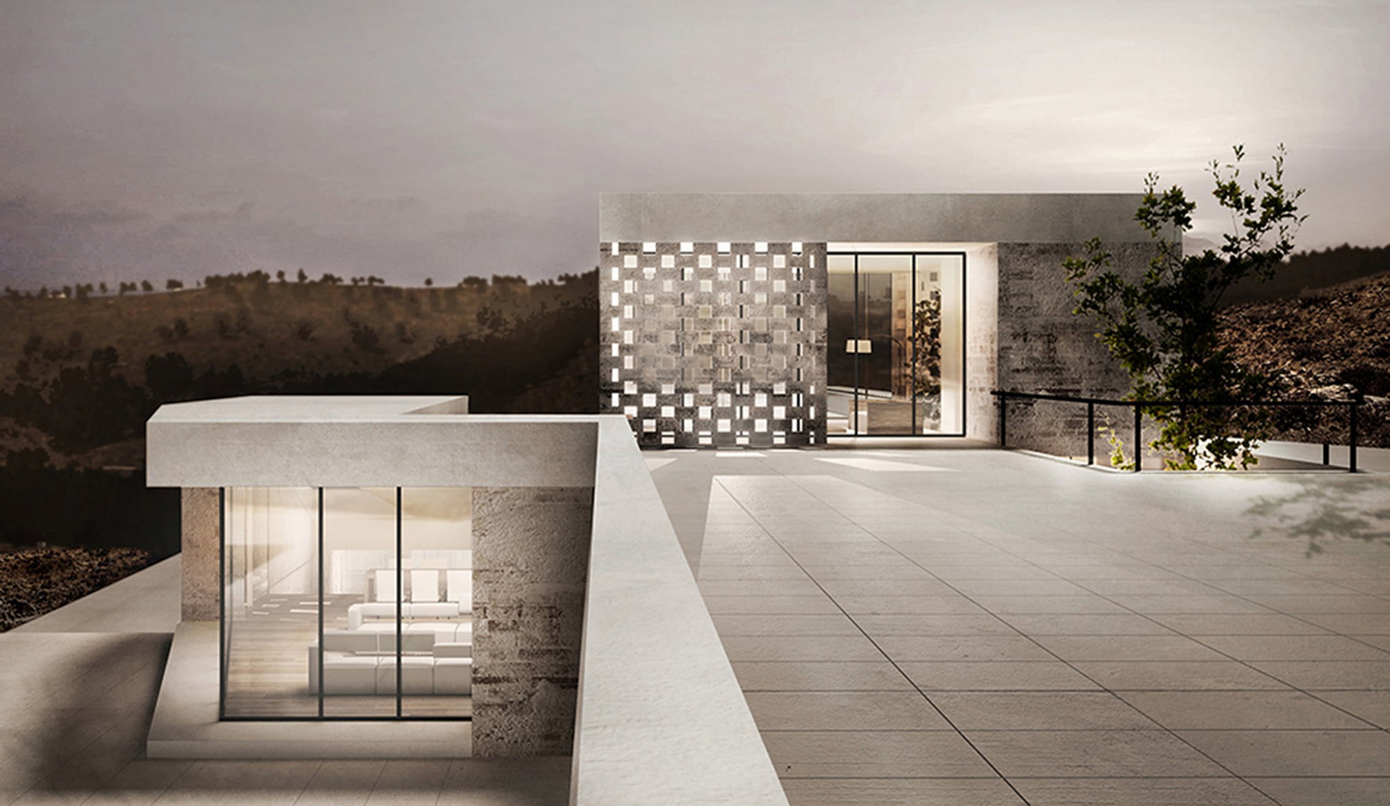 The idea was to morph the building with the natural flow of the topography, by placing the body of the house along the different levels of the mountain. In an attempt to stay connected to the views, a skin was introduced to the building. A disintegration of materials rules the play from the most solid bricks, to permeable void brick walls to a complete glass façade opening up at the tips of the building where the space is most public and transparent.