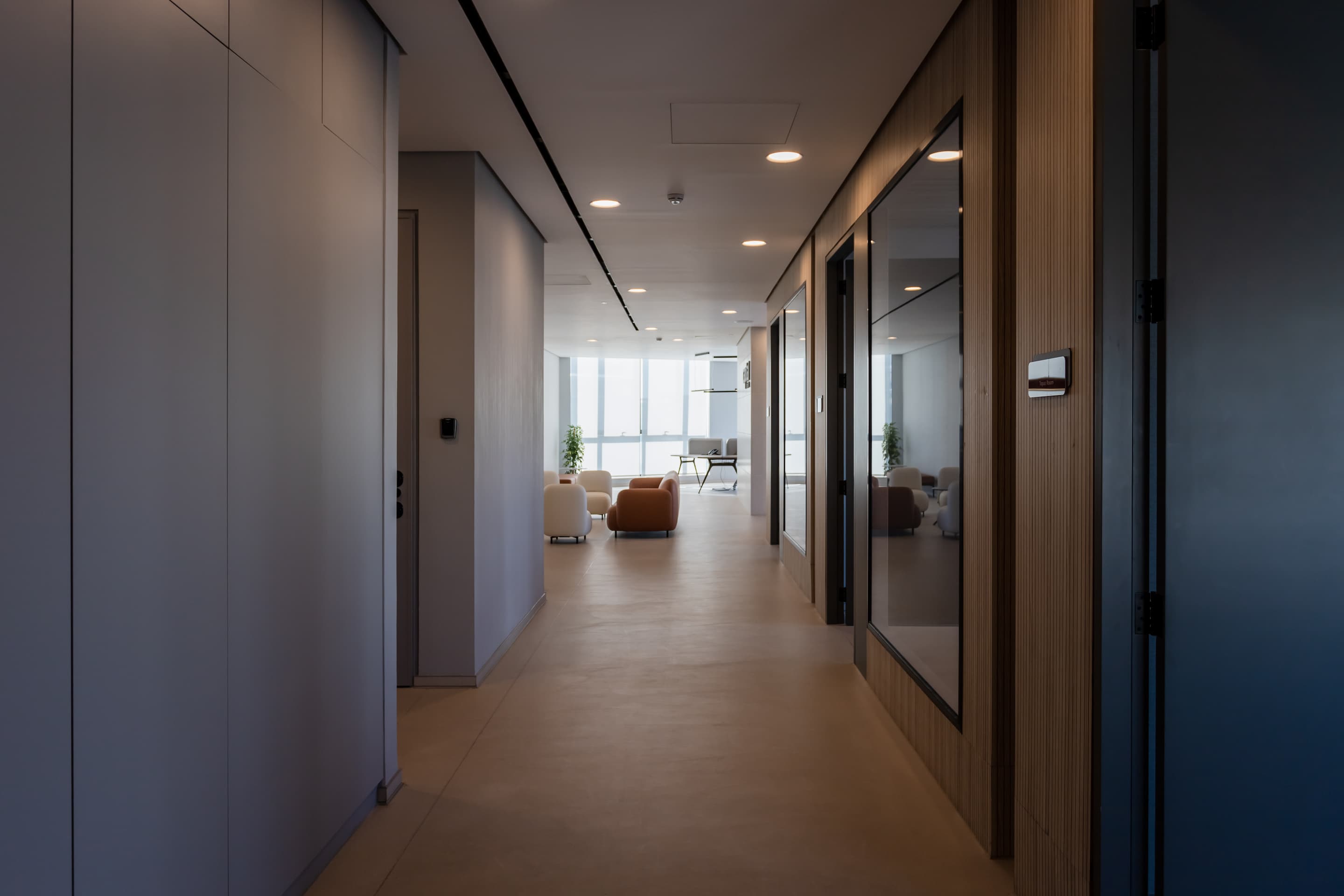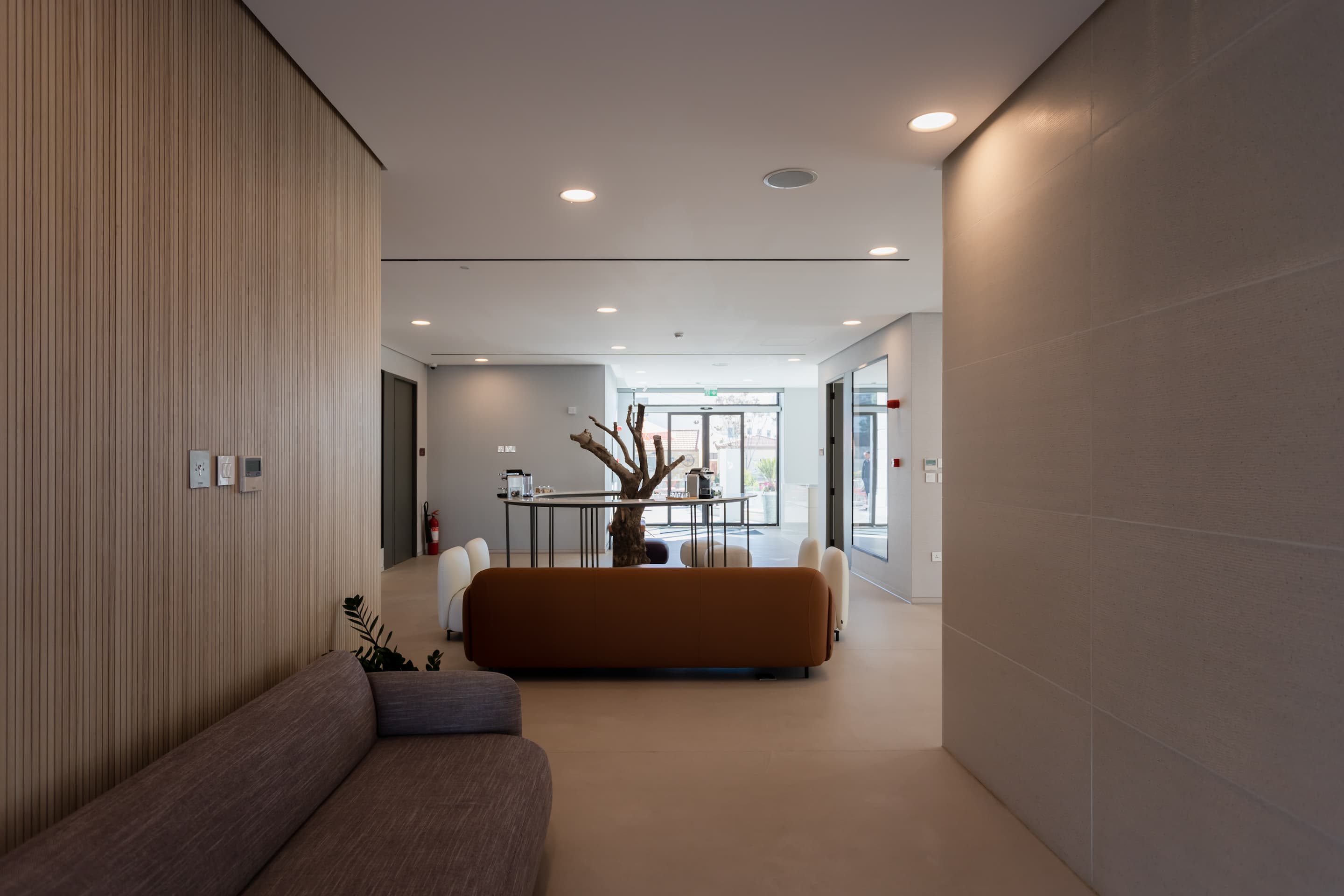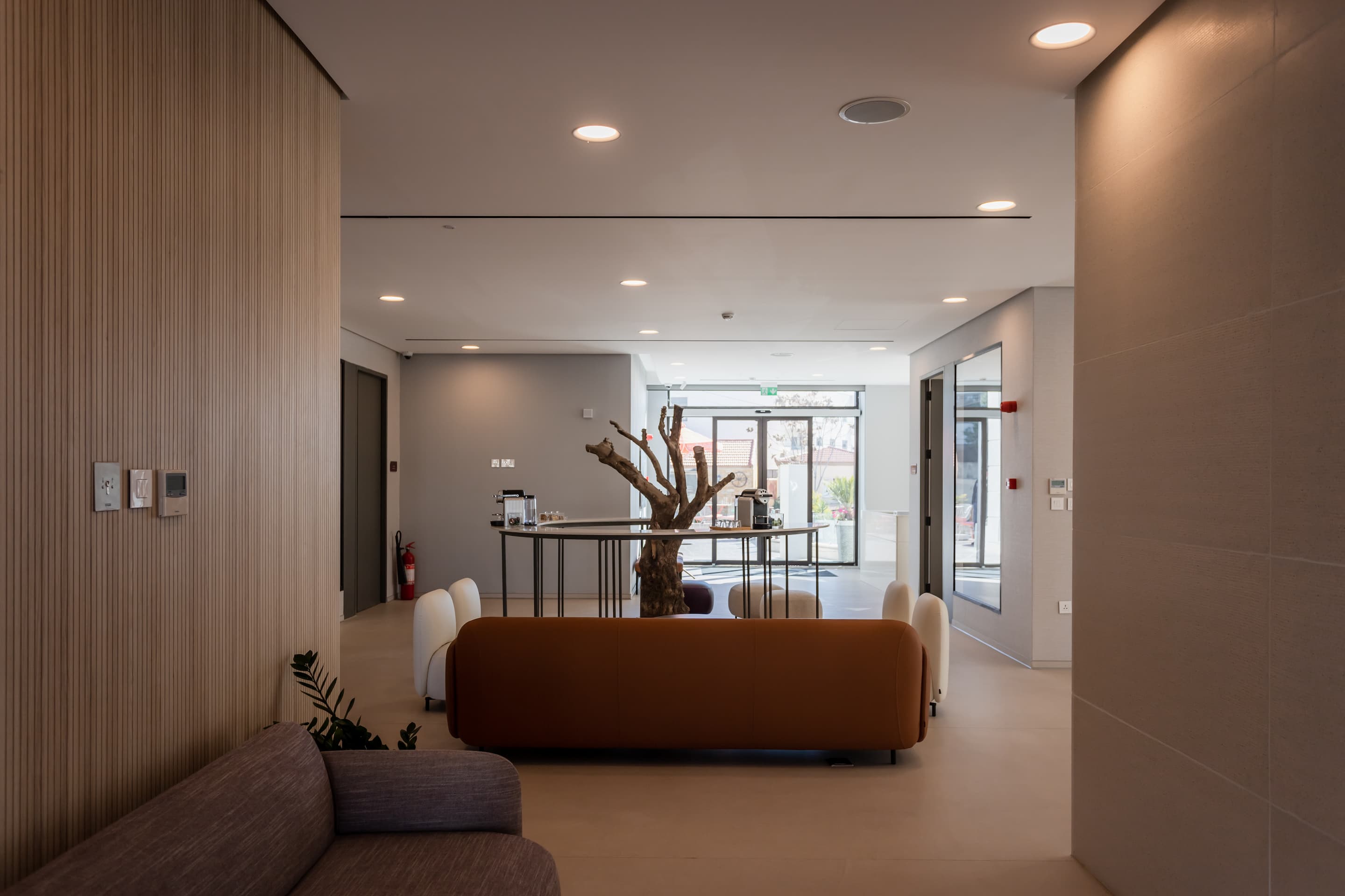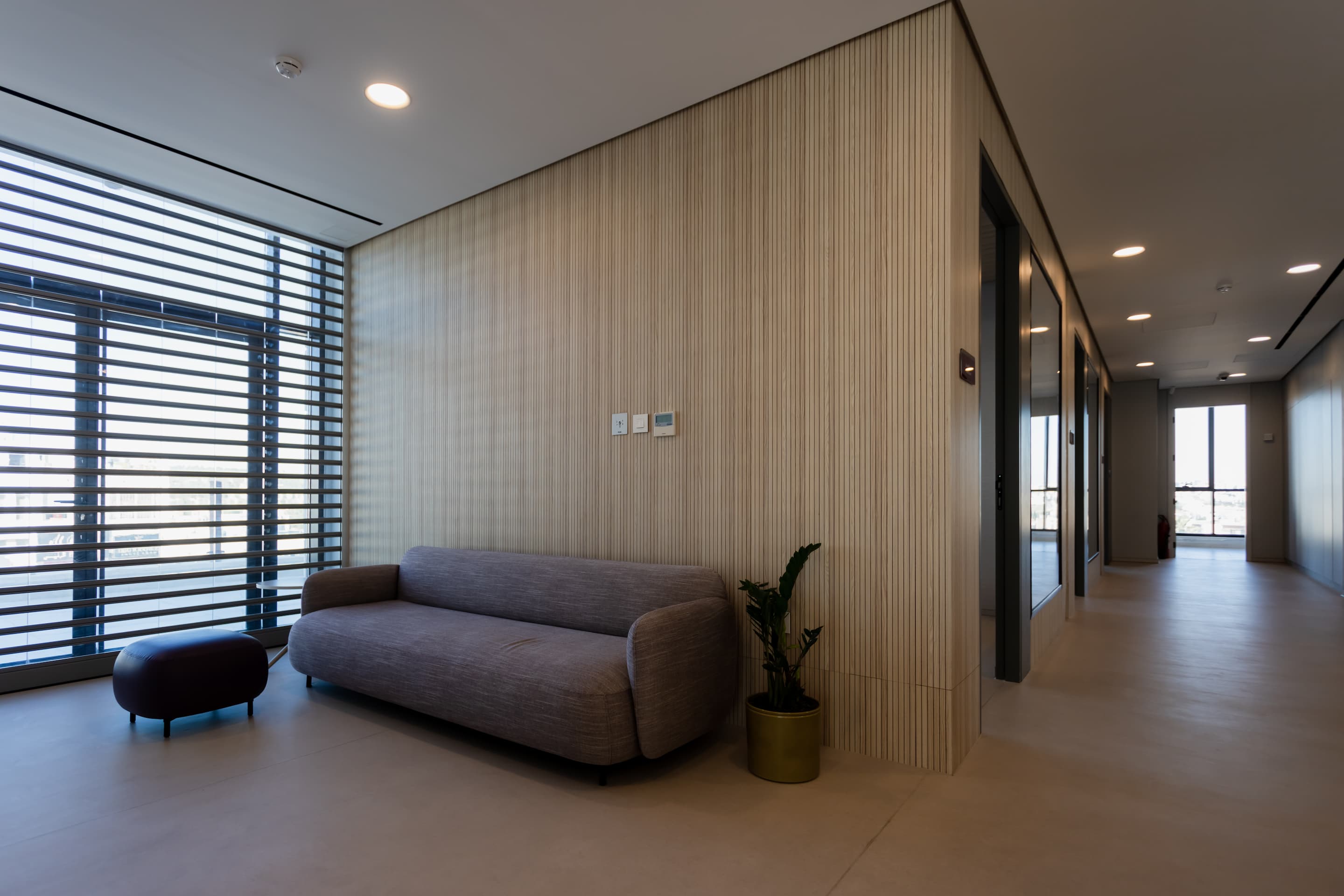 From the moment clients enter, they are welcomed into a reception area reminiscent of a hotel lounge, while the offices are designed as independent cubical enclosures that strike a balance between openness and privacy. Located in a prime, high-traffic area of Dabouq, surrounded by shops and cafés and frequented by an elite clientele, the branch reflects both accessibility and exclusivity in its design language.