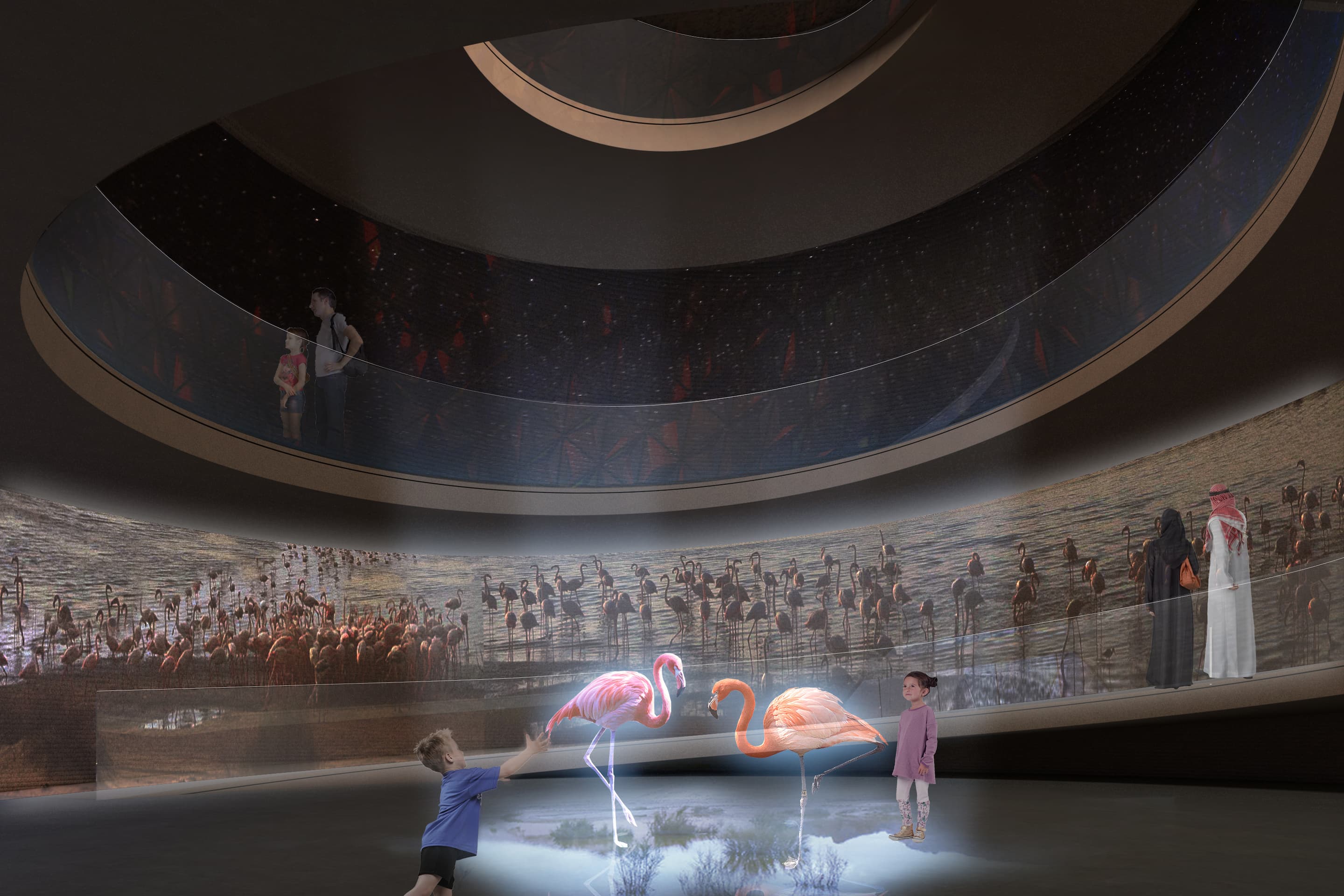 Set on the edge of the Wathba Wetland Reserve southeast of Abu Dhabi, the Flamingo Visitor Center is a modest intervention that carefully mediates between architecture and landscape. Three conical volumes rise subtly from the desert floor, drawing quiet inspiration from the Greater Flamingo.