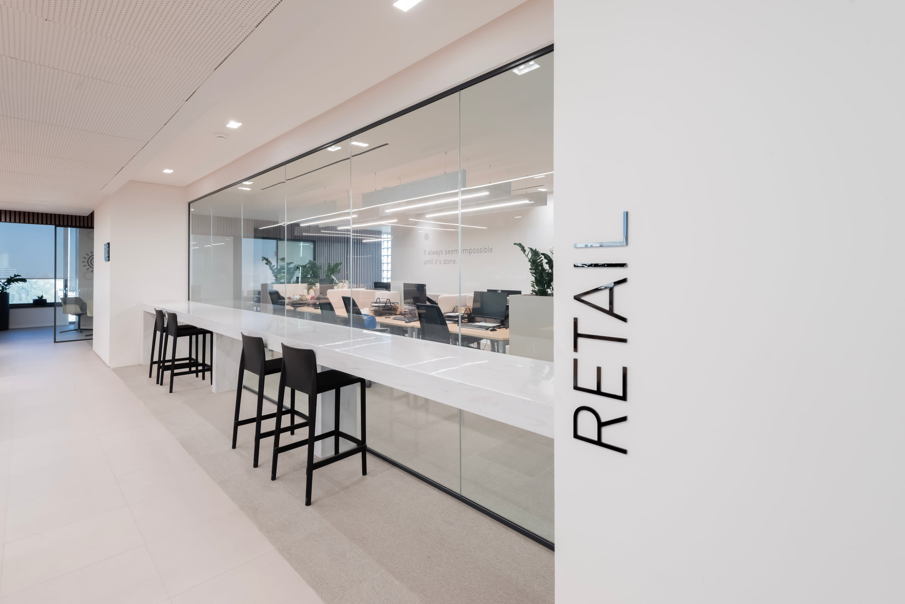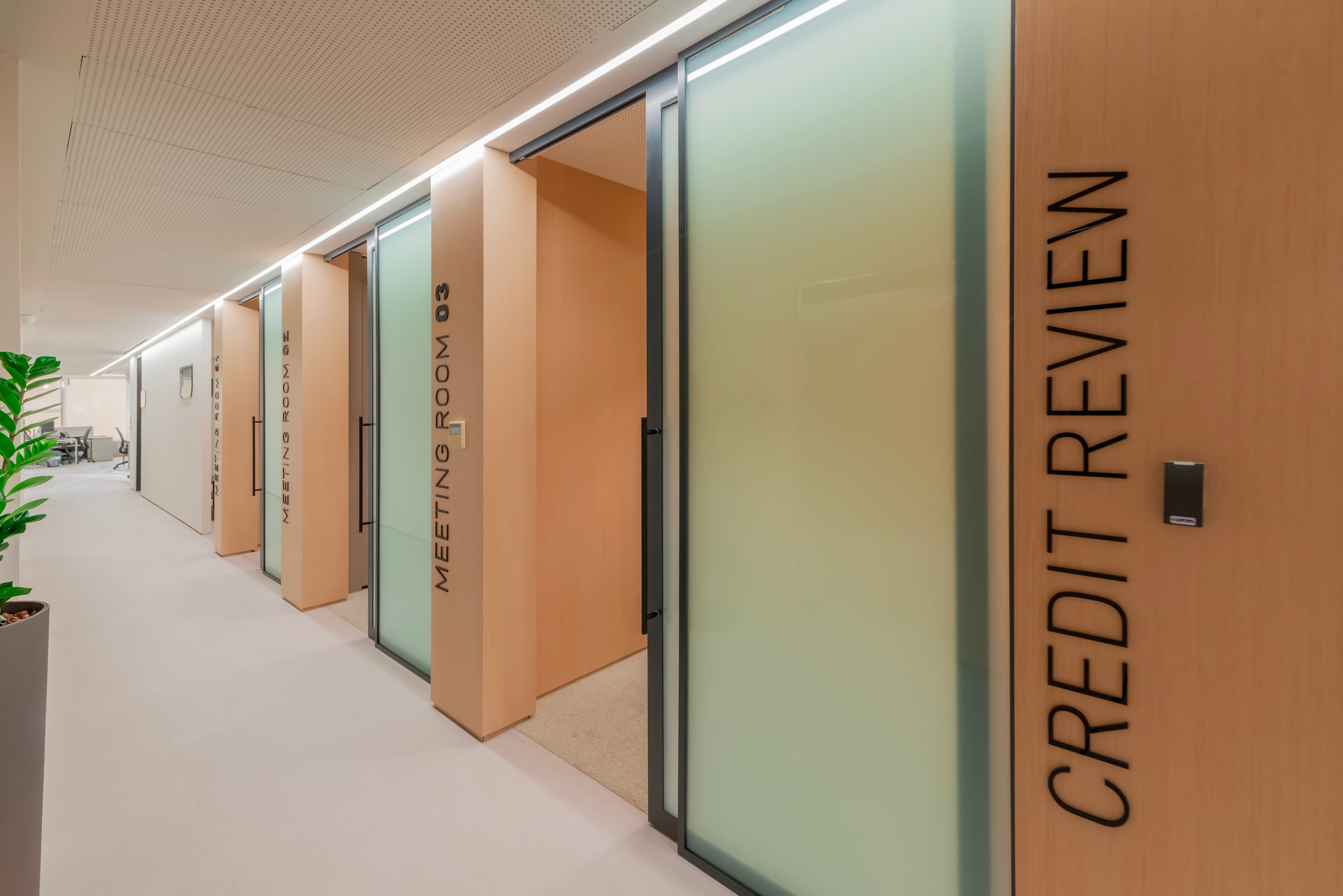 Circulation and zoning were thoughtfully organized to enhance wayfinding and workflow efficiency. The signage system was clean, minimal, and carefully curated to match the bank’s branding, reinforcing a consistent identity across all areas of the project