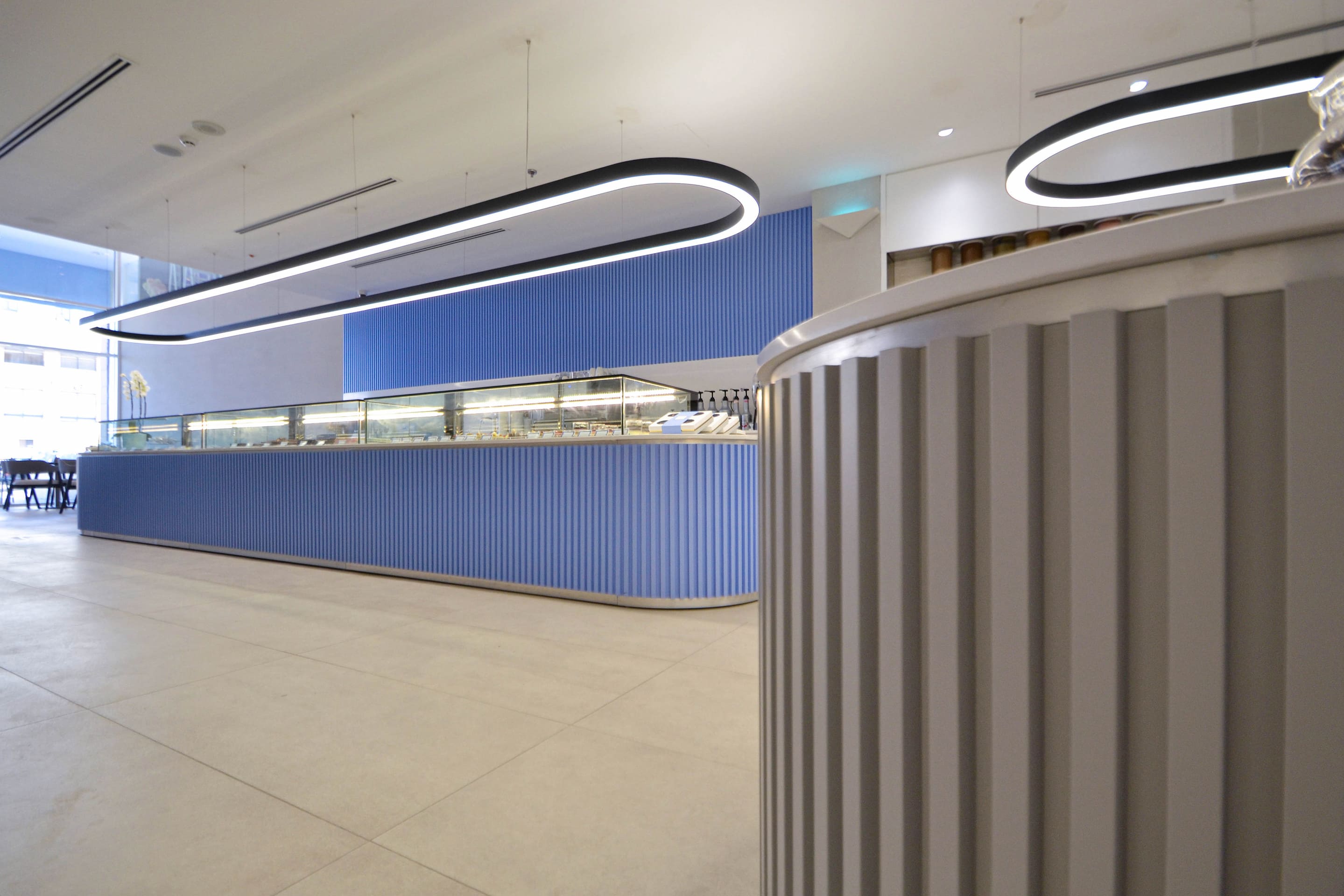 This heterogeneity of program called for an aesthetic of quiet neutrality—an atmosphere that allows the richness of the products to take center stage. The interior was designed as a free-flowing plan, composed of floating islands that gently guide movement and discovery. These elements break away from the traditional, frontal display of retail environments, encouraging a more exploratory and sensorial experience.