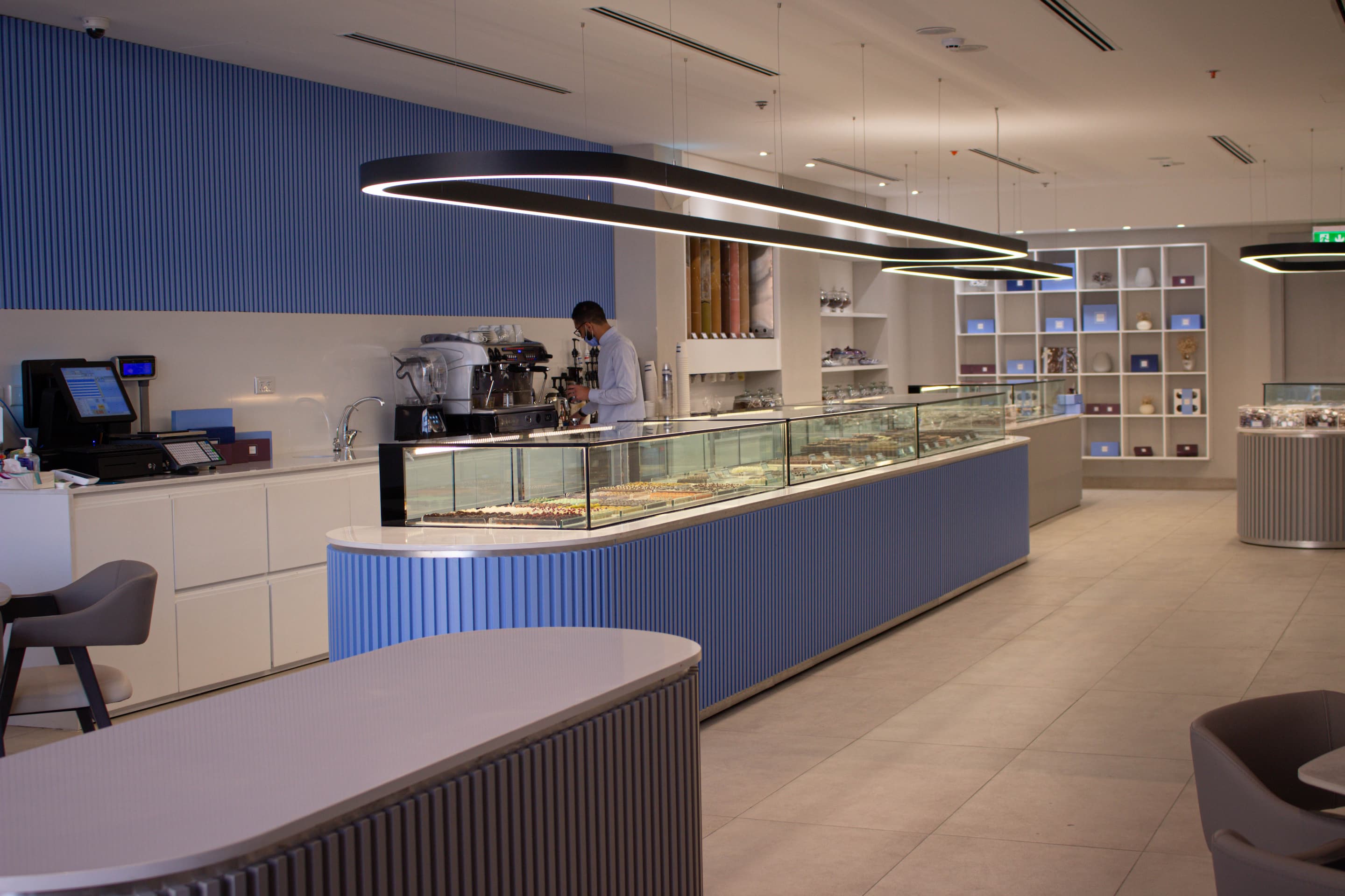 Lilac Chocolate and Dates is conceived as more than a retail destination; it is an immersive experience that blends the elegance of a boutique with the comfort of a café. The project presented the challenge of accommodating multiple functions within a single, cohesive space. It operates both as a retail environment that showcases the brand’s chocolate and date collections, and as a welcoming café where visitors can pause, taste, and connect with the products in a more intimate way.